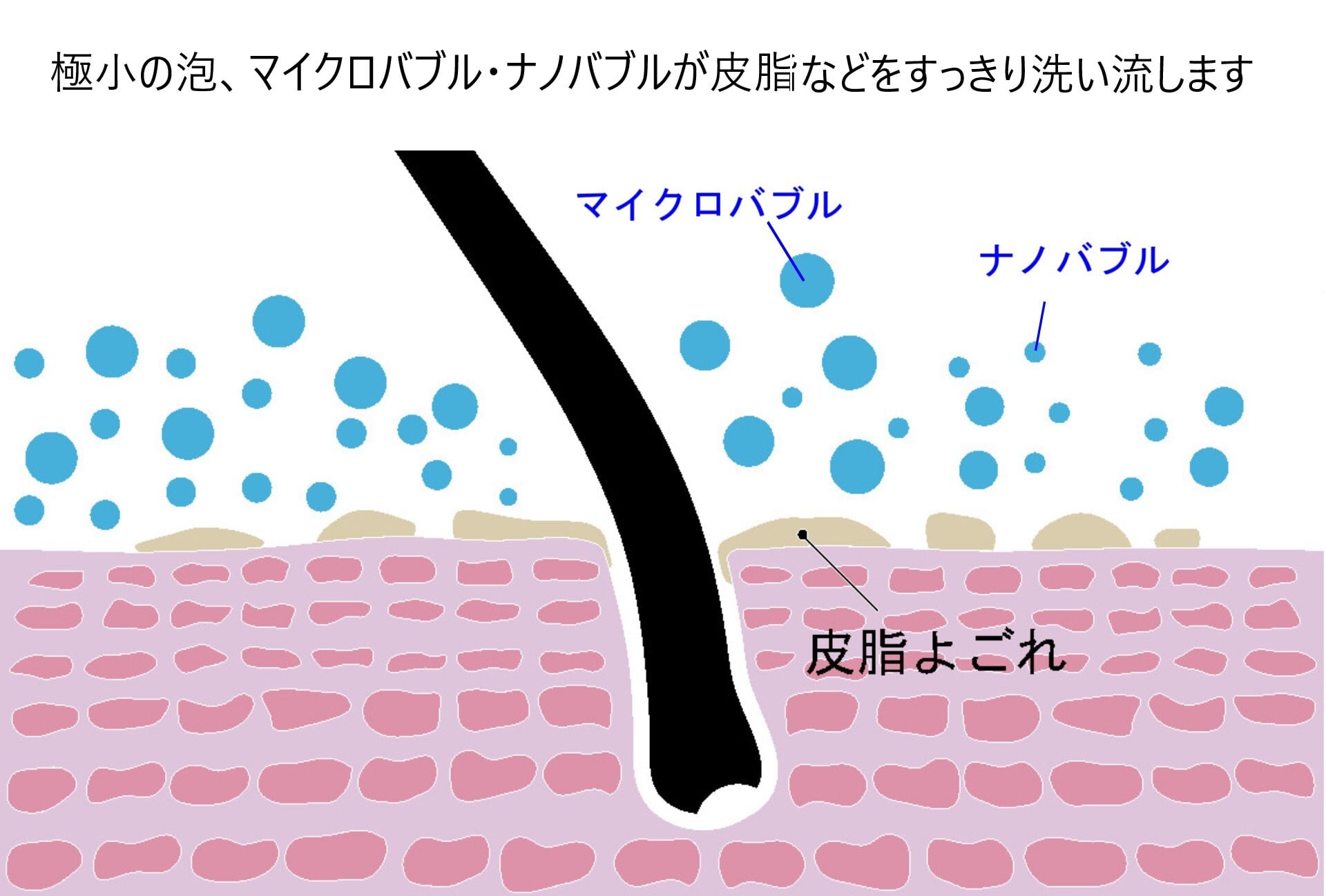 極小の泡、マイクロバブル・ナノバブルが皮脂などをすっきり洗いながします。シャワーヘッドに取り付けるだけでどなたでも簡単にマイクロバブル・ナノバブル効果が体験できます。